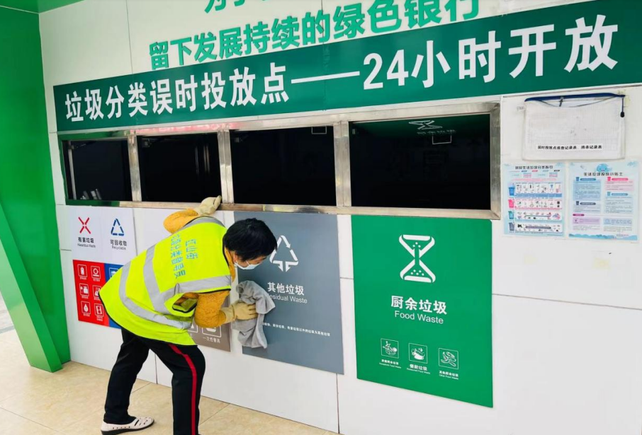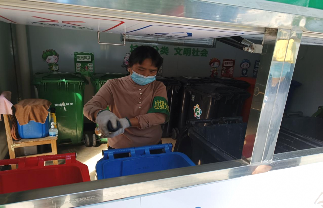 黃埔區紅山街雙沙社區目前正在改造中,社區內的耀華西街是居民們“臨時安置房”的所在地。2022年,該片區垃圾分類投放點升級改造後,居民的居住環境提高了一個檔次。每天,垃圾分類站桶員到點位後會及時對垃圾房除臭滅菌,再將投放點打掃得幹幹淨淨。當居民投放垃圾後,站桶員會及時噴灑清新劑,始終保持投放點幹淨無異味。