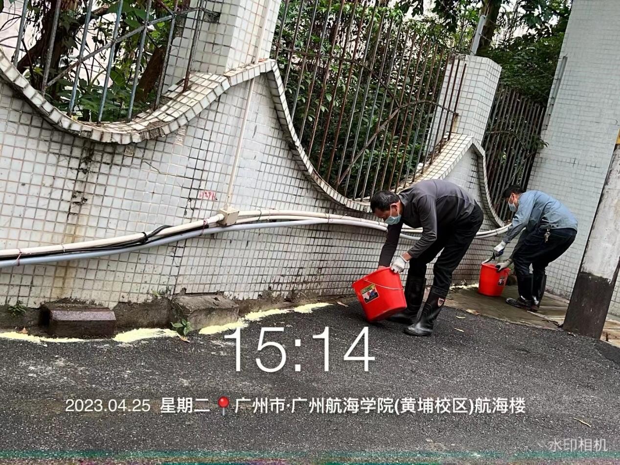 (圖:在廣州航海學院圍欄投放硫磺粉)