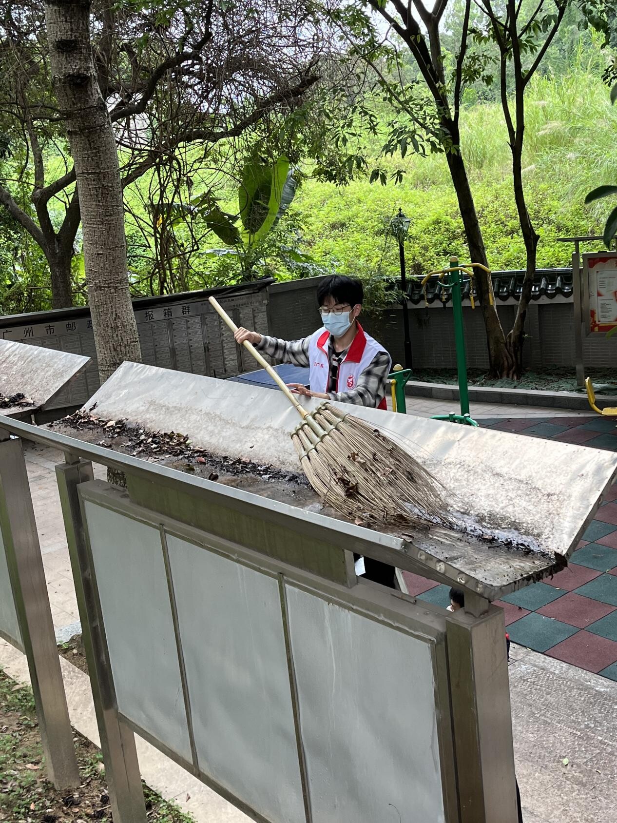 另一組黨員誌願者發揮不怕苦不怕累的精神,拿起掃把、落葉耙子、抹布等清潔工具,對社區活動廣場、公園草地、宣傳欄等衛生死角進行“地毯式”大清掃,減少蚊蟲滋生。