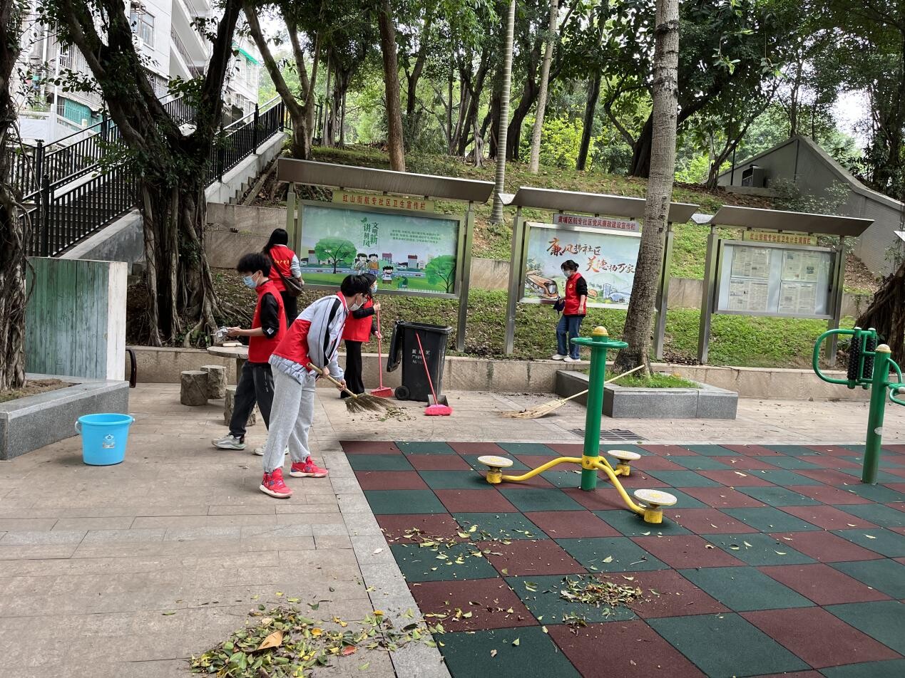 (圖:在小公園清掃落葉、擦洗宣傳欄)