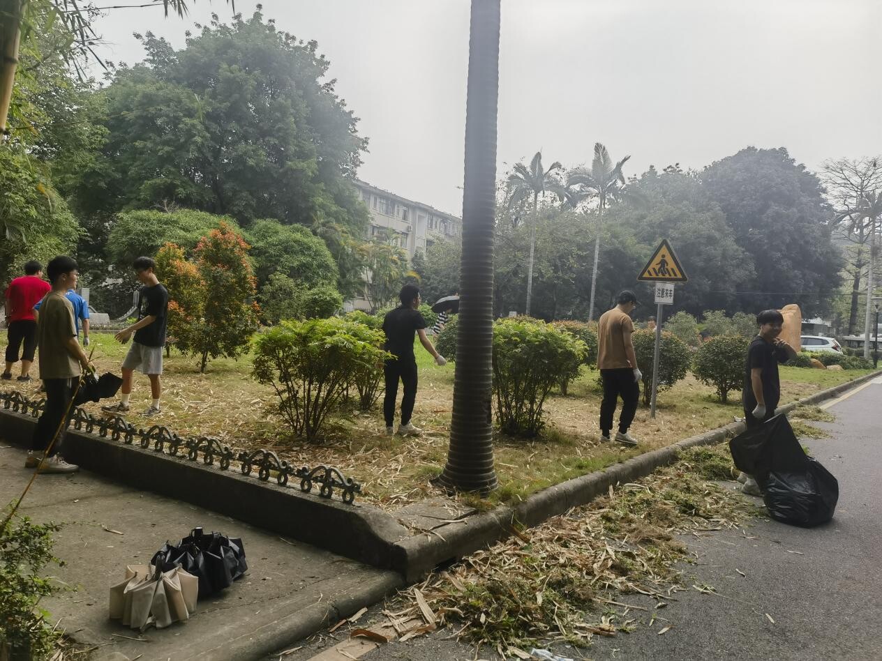 (圖:在廣州航海學院清理落葉、清除雜草)
