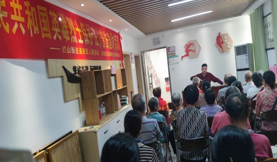 邀請社區駐點律師為廣大居民、退役軍人宣傳《中華人民共和國英雄烈士保護法》、《烈士褒揚條例》等法律知識,召集黨員、誌願者、退役軍人集體頌唱紅色歌曲。