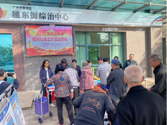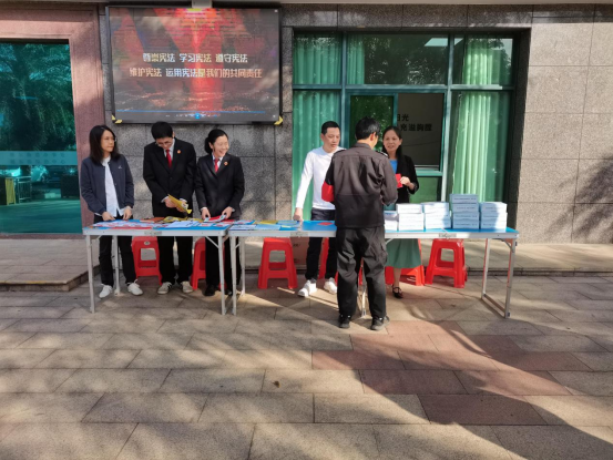 為迎接“12.4”國家憲法日,為增強轄區居民群眾的法治觀念和憲法意識,積極營造學憲法、講憲法的良好法治氛圍,12月4日下午,穗東街道黨工委、辦事處聯合穗東司法所、區人大代表、駐街法官、檢察官開展“大力弘揚憲法精神,建設社會主義法治文化”。現場通過派發《中華人民共和國憲法》、播放公益視頻告知居民群眾要掌握憲法知識,增強憲法意識,更應自覺遵守憲法,認真踐行憲法。現場共計派發200份《中華人民共和國憲法》及相關宣傳資料,受眾人群超過400人次。