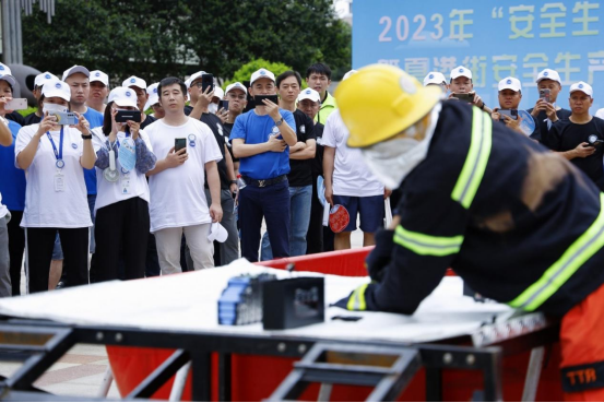 針對近期電動車火災事故頻發的情況,活動現場組織開展了模擬電動自行車鋰電池爆燃處置演練,零距離感受火災現場,讓大家對電動車火災的極端危害性有了更加直觀、深刻的認識。