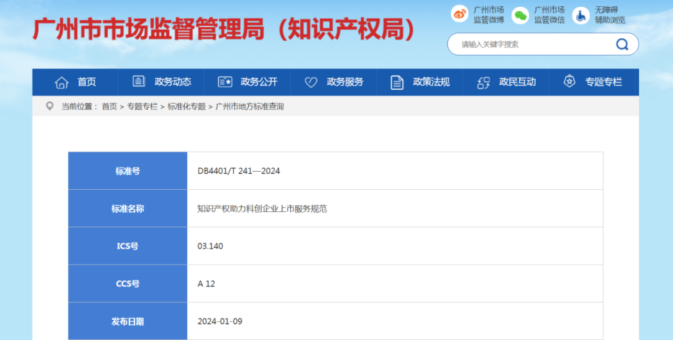 1月9日,廣州市市場監督管理局(知識產權局)正式批準發布《知識產權助力科創企業上市服務規範》地方標準(以下簡稱《規範》),該標準是國內首個科創企業上市知識產權服務規範地方標準,將於2024年2月9日起實施。