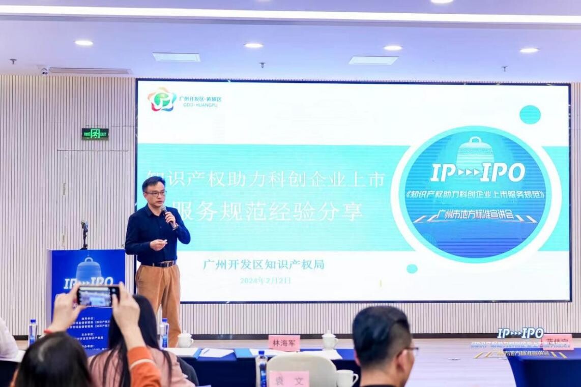 活動現場,廣州開發區知識產權局副局長陳光輝向大家分享了廣州市地方標準《知識產權助力科創企業上市服務規範》經驗。他強調,標準是起點,不是終點!廣州開發區始終重視公共服務的數智特色,全力打造廣州開發區、黃埔區知識產權數字化集成服務平台(ip.hp.gov.cn),設立“知識產權助力上市”在內的六大應用場景,對區內企業免費提供科創屬性評估報告,共享知識產權助力科創企業上市服務規範等地方標準內容。