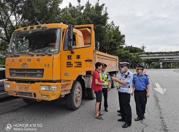 黃埔區城市管理和綜合執法局、區公安分局交警大隊、區建設和交通局等相關部門在廣汕公路長平入口處,開展建築工地周邊路段治超治限聯合整治行動,本次行動共出動人員6人,車輛3台,檢查運輸車輛10餘輛次,未發現違法違規車輛。