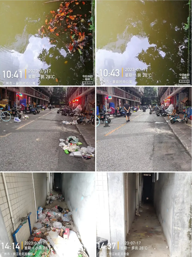 環衛科巡查文衝街道瑞東花園、幸福裏,區政府、科學城中學、區委黨校、知識城等重大任務保障線路,巡查發現廣州知識城發展規劃館周邊環境衛生情況較好,科學城路邊邊線落葉堆積、漂浮垃圾落地、積沙等,知識城玉麟西一路有餘泥汙染,已要求作業單位及時清掃、衝洗。