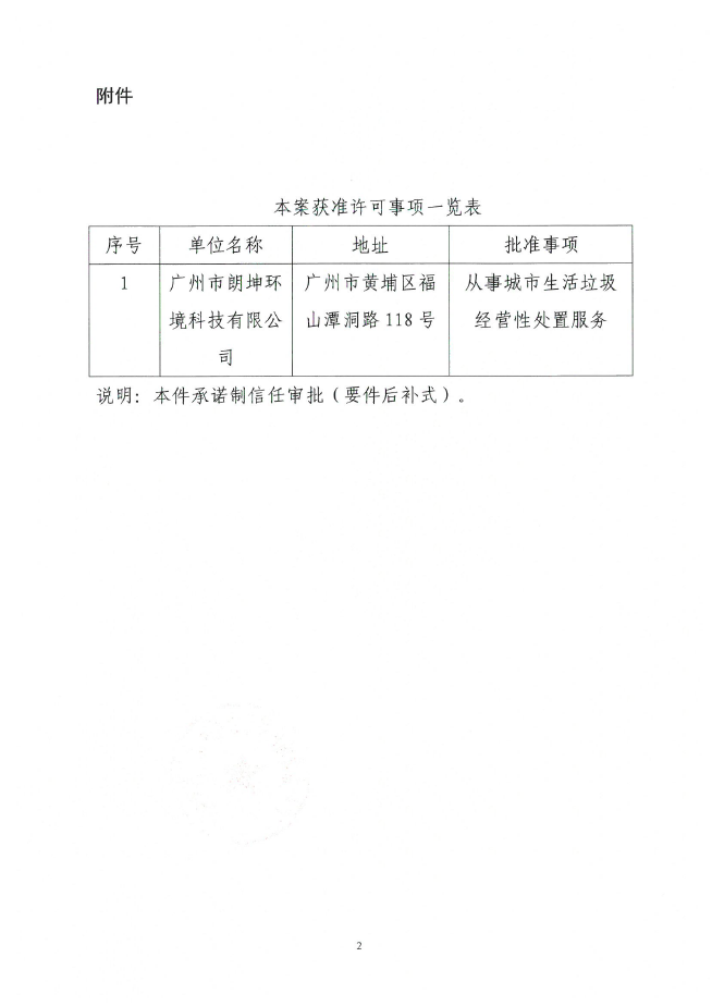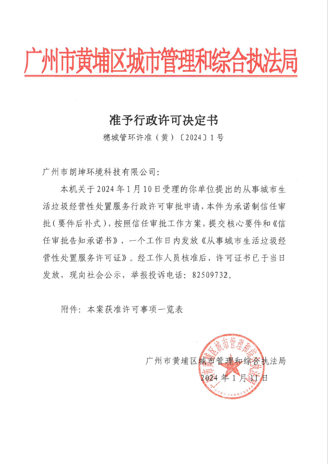 準予行政許可決定書(穗城管環許準(黃)〔2024〕1號)