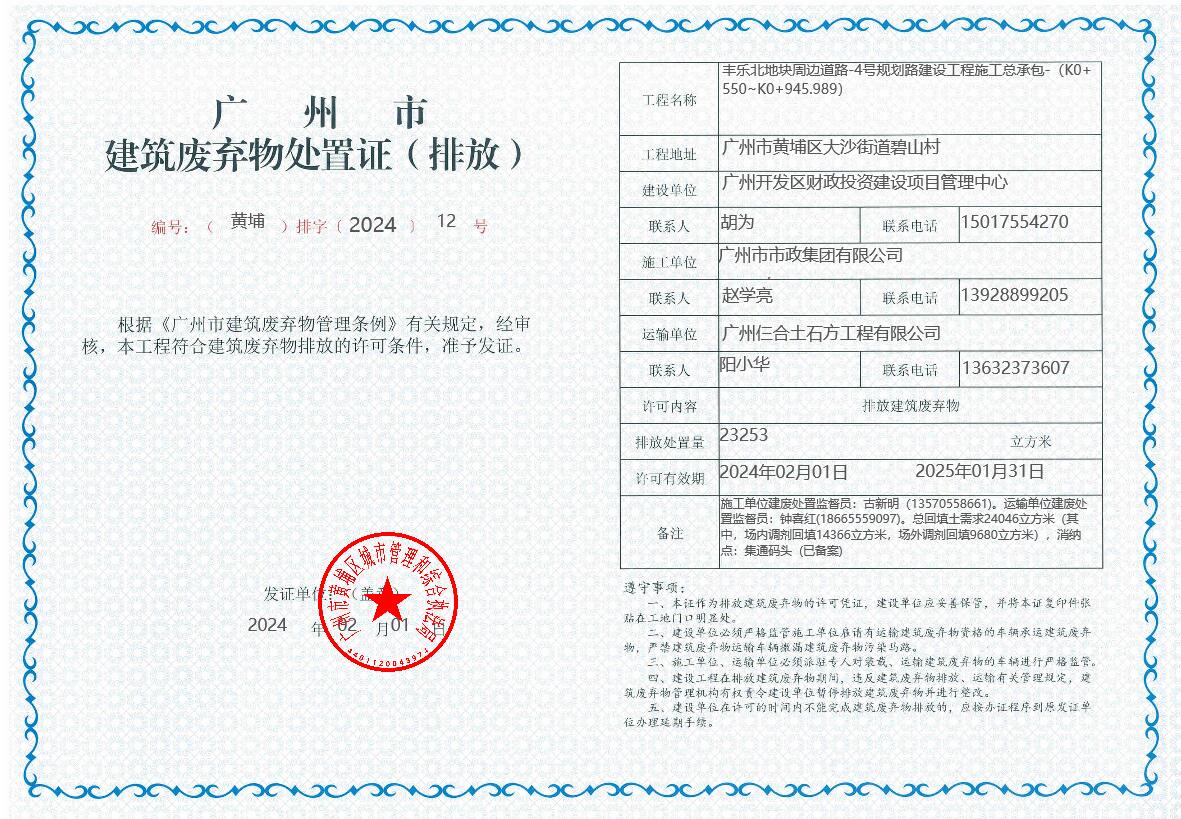 廣州市建築廢棄物處置證(排放)(黃埔排字〔2024〕12號)
