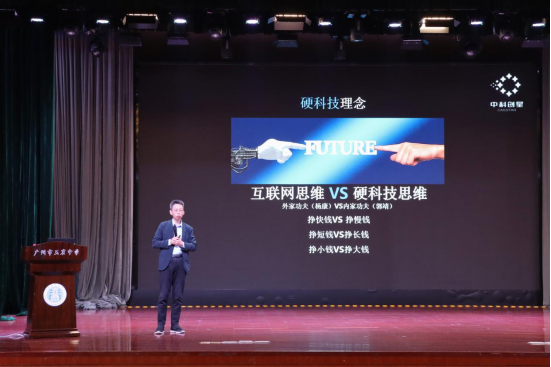 講座中,米磊博士為同學們比較分析了什麼是互聯網思維,什麼是硬科技思維。用武俠小說人物楊康、郭靖的比喻,向同學們形象生動的闡述了兩種路徑選擇的區別,引起了同學們極大的共鳴。發展硬科技需要一個漫長的研發與投入過程,並不是一個“賺快錢”的行業,但當關鍵技術實現突破,所收獲的回報將是指數型的增長。米磊還舉出實際的例子,鼓勵同學們要讓自己的人生呈指數型增長,要沉下心厚積薄發,不斷拓展自己的成長天花板。