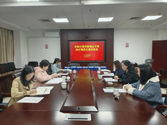 檢查組首先到魚珠街聽取街道辦書記吳承廣彙報街鎮“7個一”規範化建設情況,實地檢查辦公場所等硬件設施,並認真查看創建工作基礎台賬。隨後,檢查組到黃埔區統計局檢查黃埔區基層統計規範化建設情況,黃埔區統計局局長李瓊玉圍繞“7個一”建設各項主題就全區的基層統計規範化工作進行詳細彙報,並就規範化建設中的問題與檢查組進行交流。