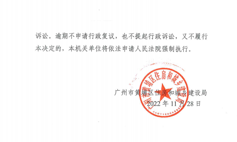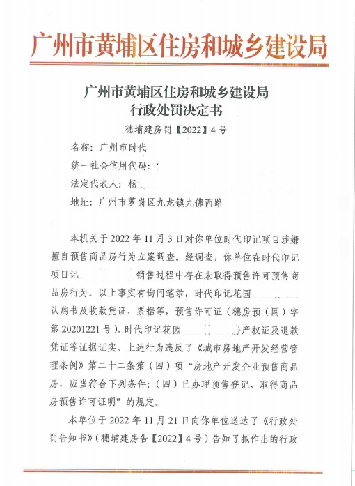 行政處罰決定書(穗埔建房罰【2022】4號)