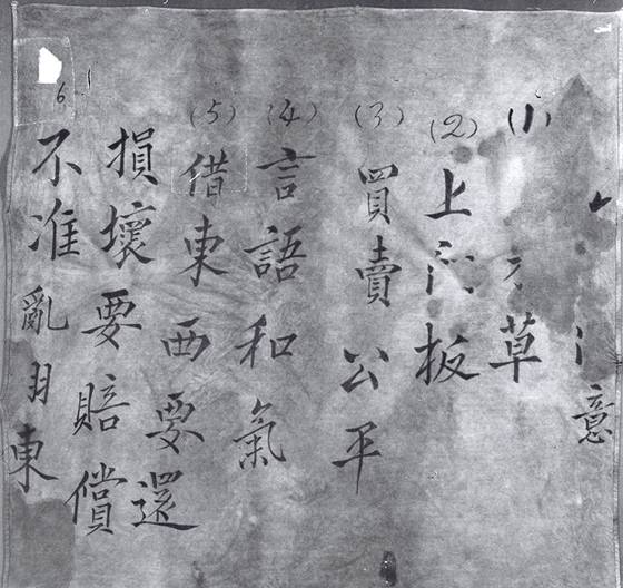 紅軍戰士寫在包袱布上的“六項注意”。