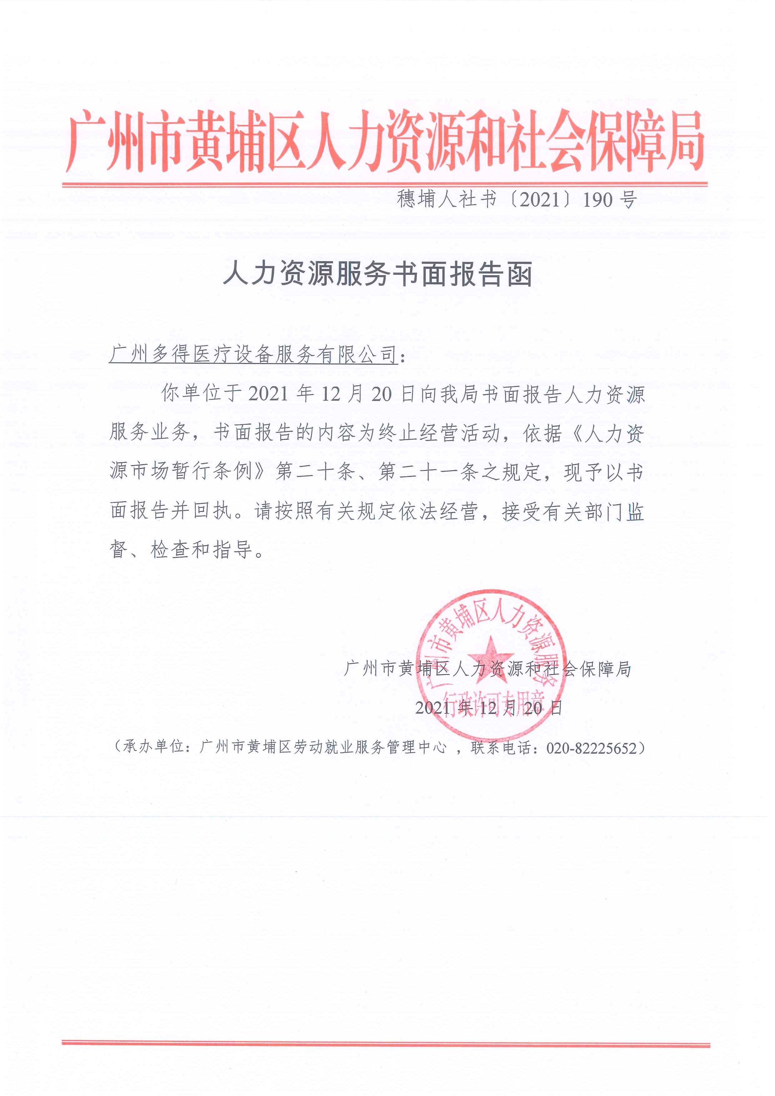 廣州多得醫療設備服務有限公司人力資源服務書麵報告