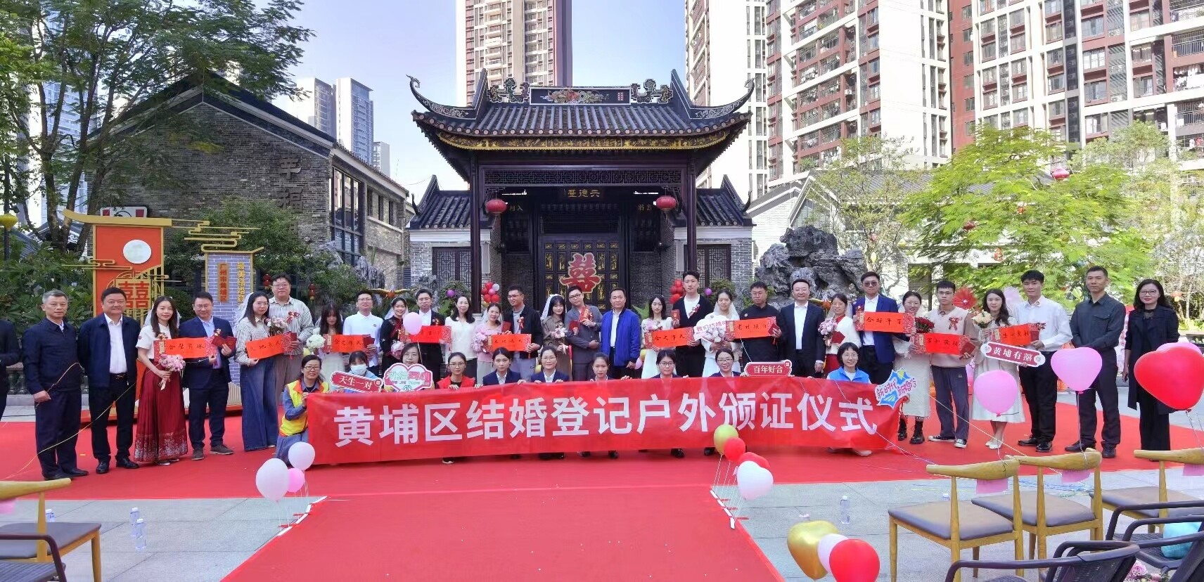2023年11月21日,廣州市黃埔區民政局在文衝街幸福裏舉辦“遇見幸福遇見你”結婚登記戶外頒證活動。頒證活動首次走進黃埔曆史文化街區,是黃埔區繼9月20日發布“最美結婚登記戶外頒證點”、“最美婚紗拍攝地”、“最美幸福婚旅路線”以來,舉辦的第3場結婚登記戶外頒證活動。