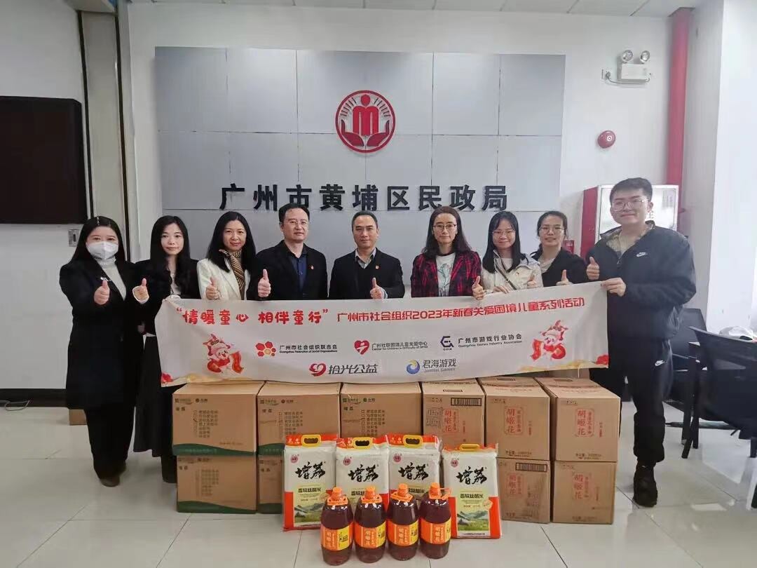 在黃埔區民政局的倡導下,多家愛心組織積極參與關愛困境兒童健康成長行動,廣州市慈善會、廣州市社會組織聯合會、黃埔區民政局等單位共同為困境兒童家庭送上春節慰問禮包,其中包含糧油禮包、兒童繪本、兒童藥品、糖果等。