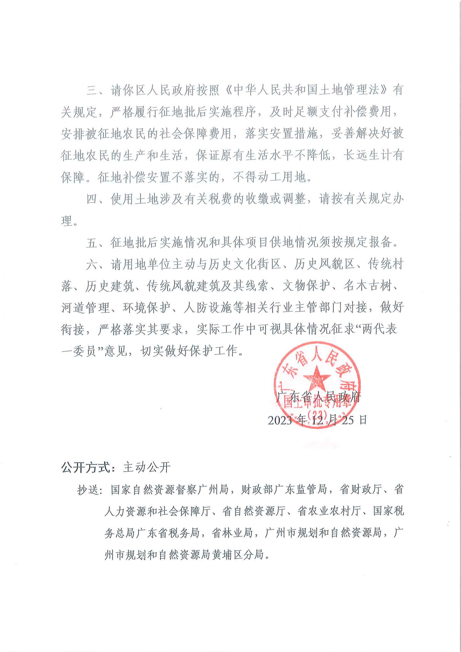 五、行政複議渠道:被征收土地所有權人及相關權利人可以自公告期限屆滿之日起60日內就“《廣東省人民政府關於廣州市黃埔區(中新廣州知識城)2022年度第二十四批次城鎮建設用地的批複》(粵府土審〔23〕〔2023〕32號)”向廣東省人民政府申請行政複議。