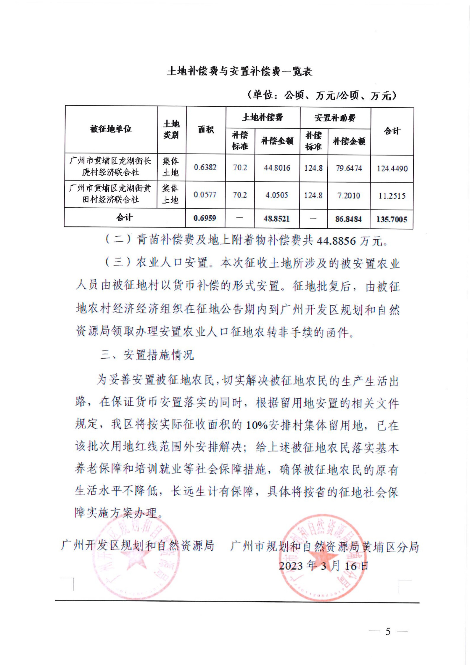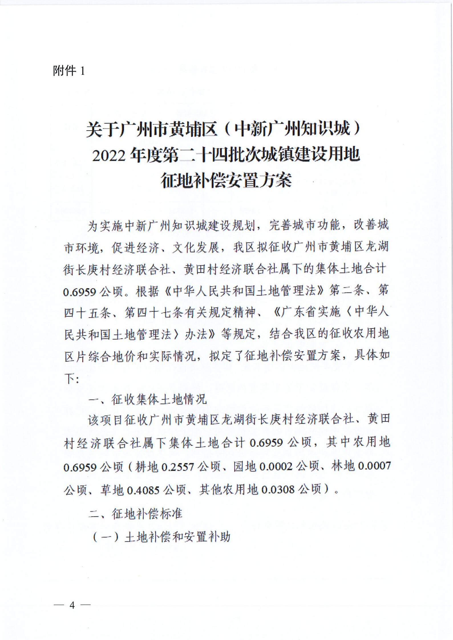 三、被征收土地情況:長庚村經濟聯合社、黃田村經濟聯合社屬下的集體土地0.6959公頃,其中農用地0.6959公頃(耕地0.2557公頃、園地0.0002公頃、林地0.0007公頃、草地0.4085公頃、其他農用地0.0308公頃)。
