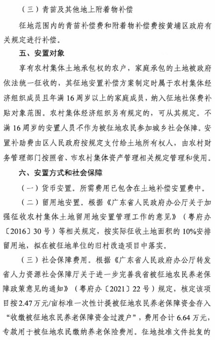 (三)青苗及其他地上附著物補償。征地範圍內的青苗補償費和附著物補償費按黃埔區政府有關規定進行補償。