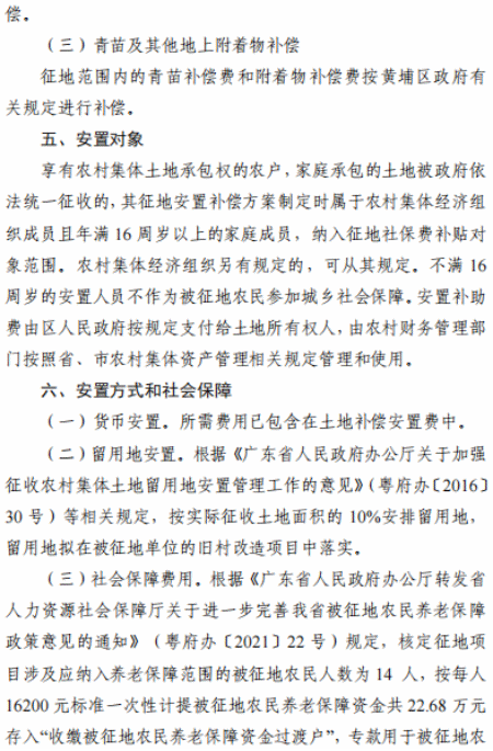 (三)青苗及其他地上附著物補償。征地範圍內的青苗補償費和附著物補償費按黃埔區政府有關規定進行補償。