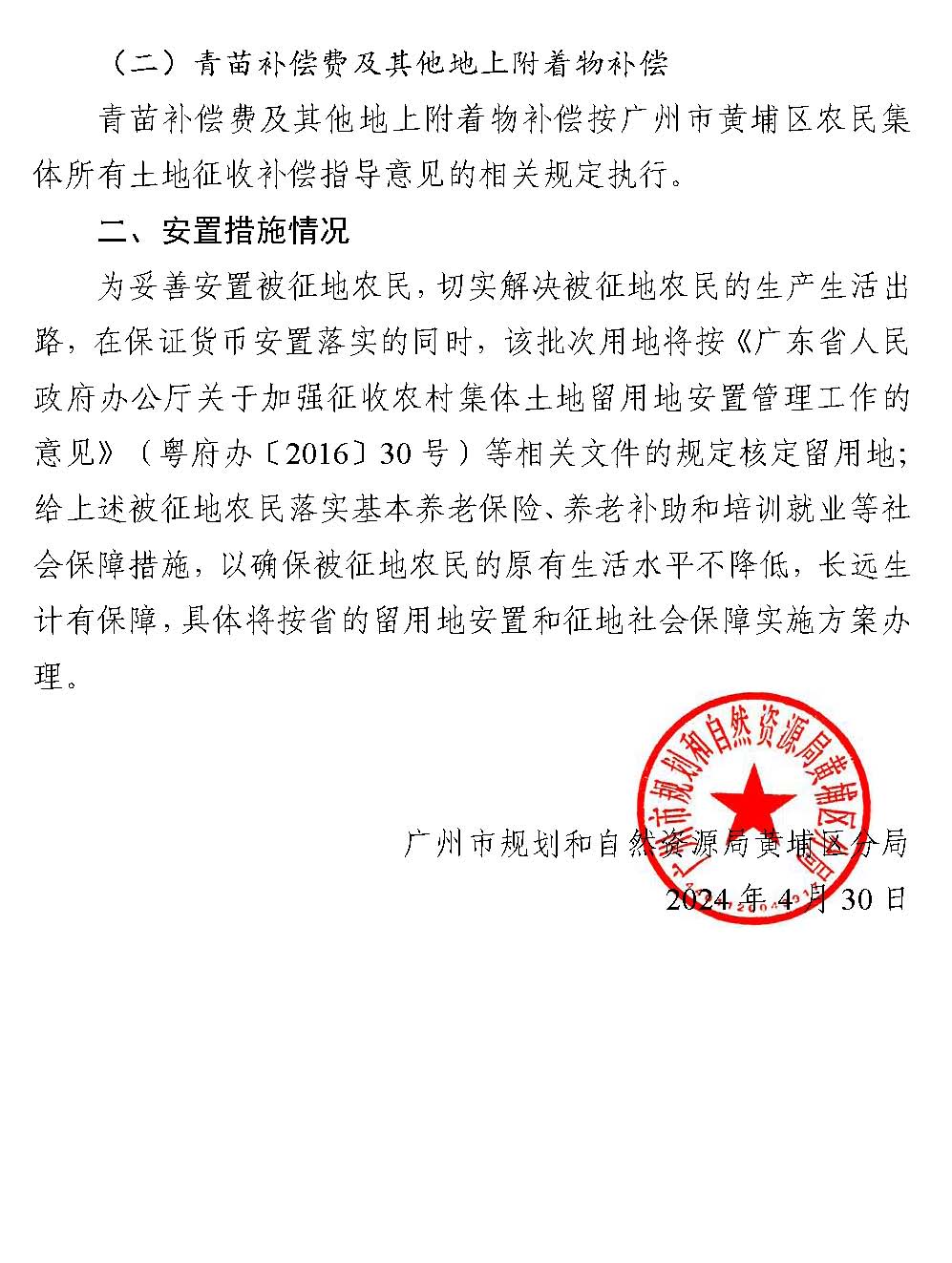 廣州市黃埔區人民政府征地補償安置公告