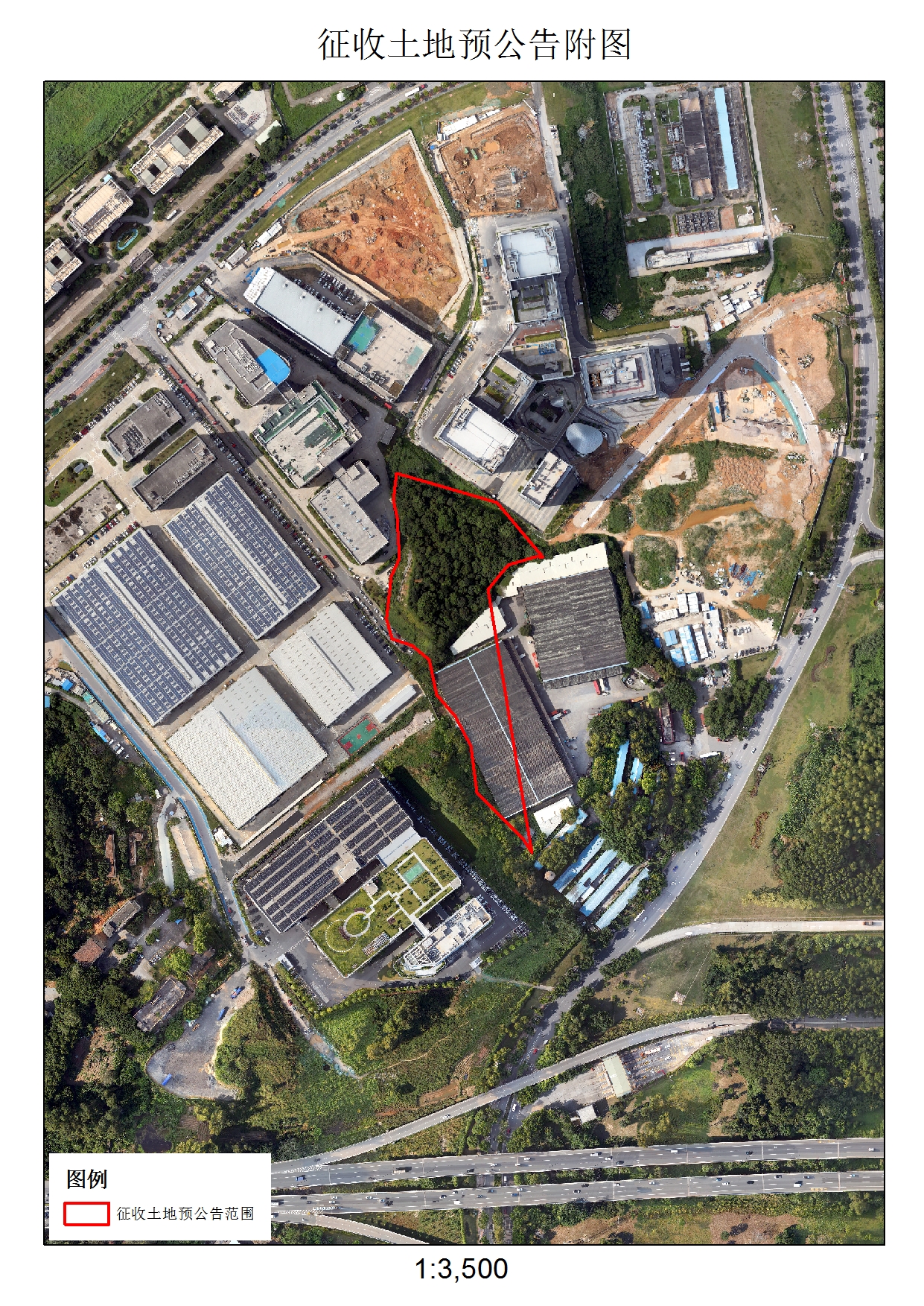 二、擬征收土地的位置和範圍:開創大道以西、廣深高速以北(詳見公告附圖)。
