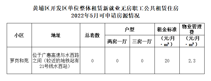 黃埔區開發區單位整體租賃新就業無房職工公共租賃住房零散房源2022年5月可申請房源情況(包含退出信息)
