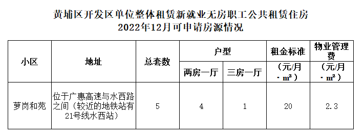 黃埔區開發區單位整體租賃新就業無房職工公共租賃住房零散房源2022年12月可申請房源情況(包含退出信息)