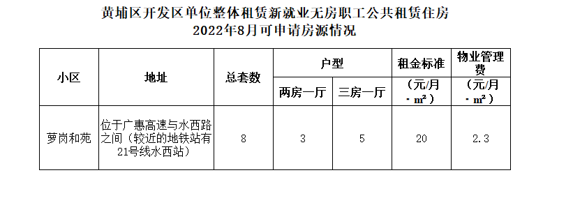 黃埔區開發區單位整體租賃新就業無房職工公共租賃住房零散房源2022年8月可申請房源情況(包含退出信息)