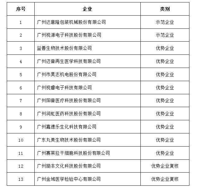 近日,國家知識產權局公示2018年度國家知識產權優勢示範企業評審及複核結果。我區廣州達意隆包裝機械股份有限公司、廣州視源電子科技股份有限公司2家企業獲評新一批國家知識產權示範企業,占廣東省示範企業獲評總量的7.4%;廣州邁普再生醫學科技有限公司、廣州賽萊拉幹細胞科技股份有限公司等9家企業成為新一批國家知識產權優勢企業,占全省優勢企業獲評總量的11.5%,同時廣州勵豐文化科技股份有限公司、廣州金域醫學檢驗中心有限公司順利通過國家知識產權優勢企業複核。