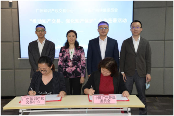會上,廣州知識產權交易中心有限公司和中國廣州仲裁委員會就“推動知產交易、強化知產保護”簽署戰略合作協議,雙方主要圍繞建立人才交流機製以及合作共建調解仲裁協同保護試點等內容展開合作。