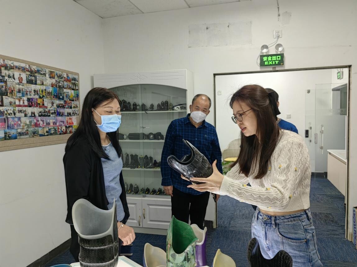 區民政局對照企業上報的年度報告內容,通過現場查看、聽取彙報的方式對企業注冊內容、工作場所、企業專用設備、生產裝配產品種類和數量等內容進行核查。了解到該企業主要經營工作為肢殘者的康複輔具適配並參與研發康複輔具適配設備等業務。裝配產品以假肢接受腔為主,主要有可調節接受腔、三明治接受腔、碳纖維的固定式雙層接受腔等。