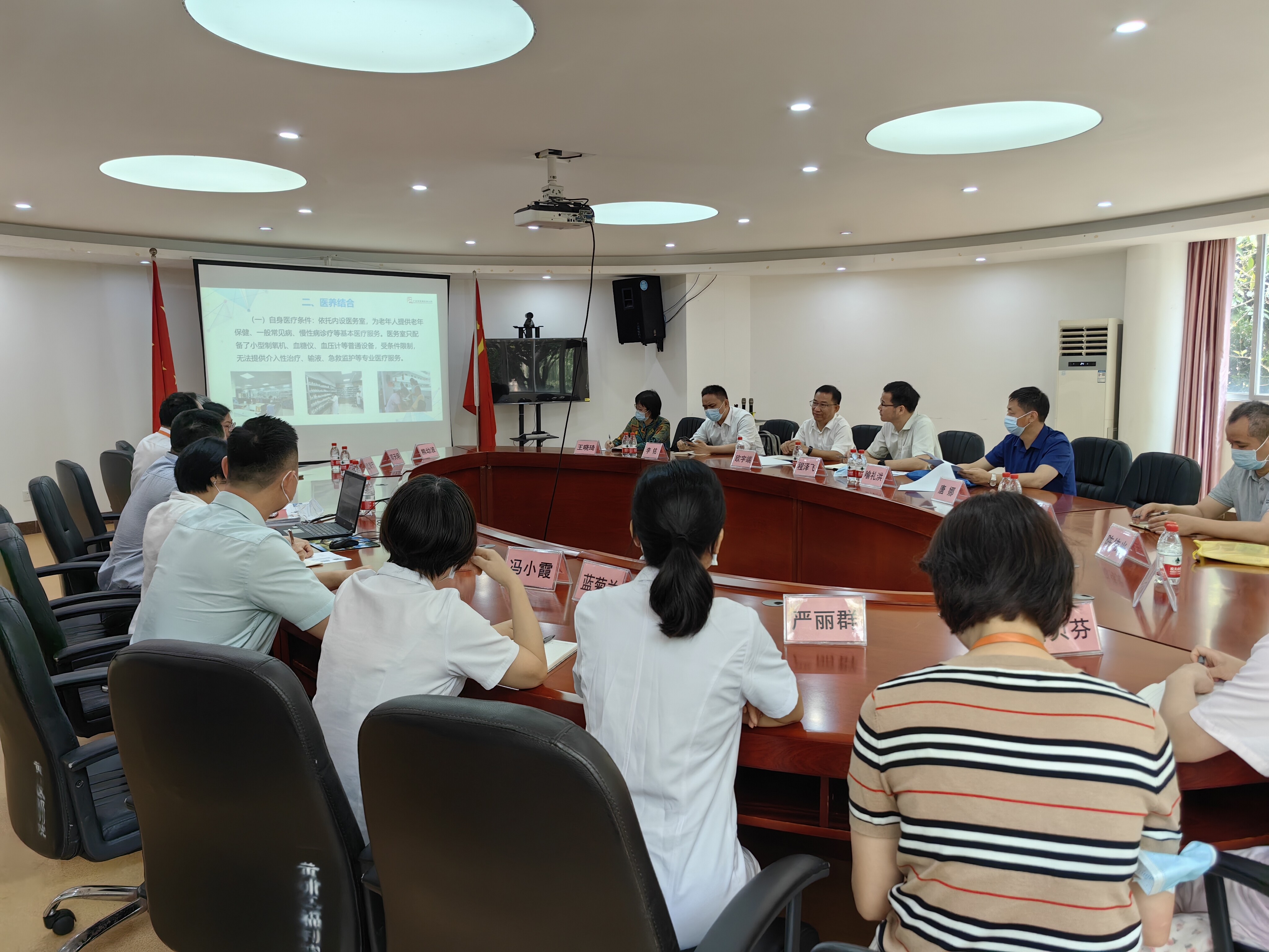 調研中,黃埔區老人院和廣醫五院先後就雙方合作共建的老年病康複中心醫養結合工作的基本情況、主要做法及成效、存在的問題和下一步打算,向調研組作出彙報。