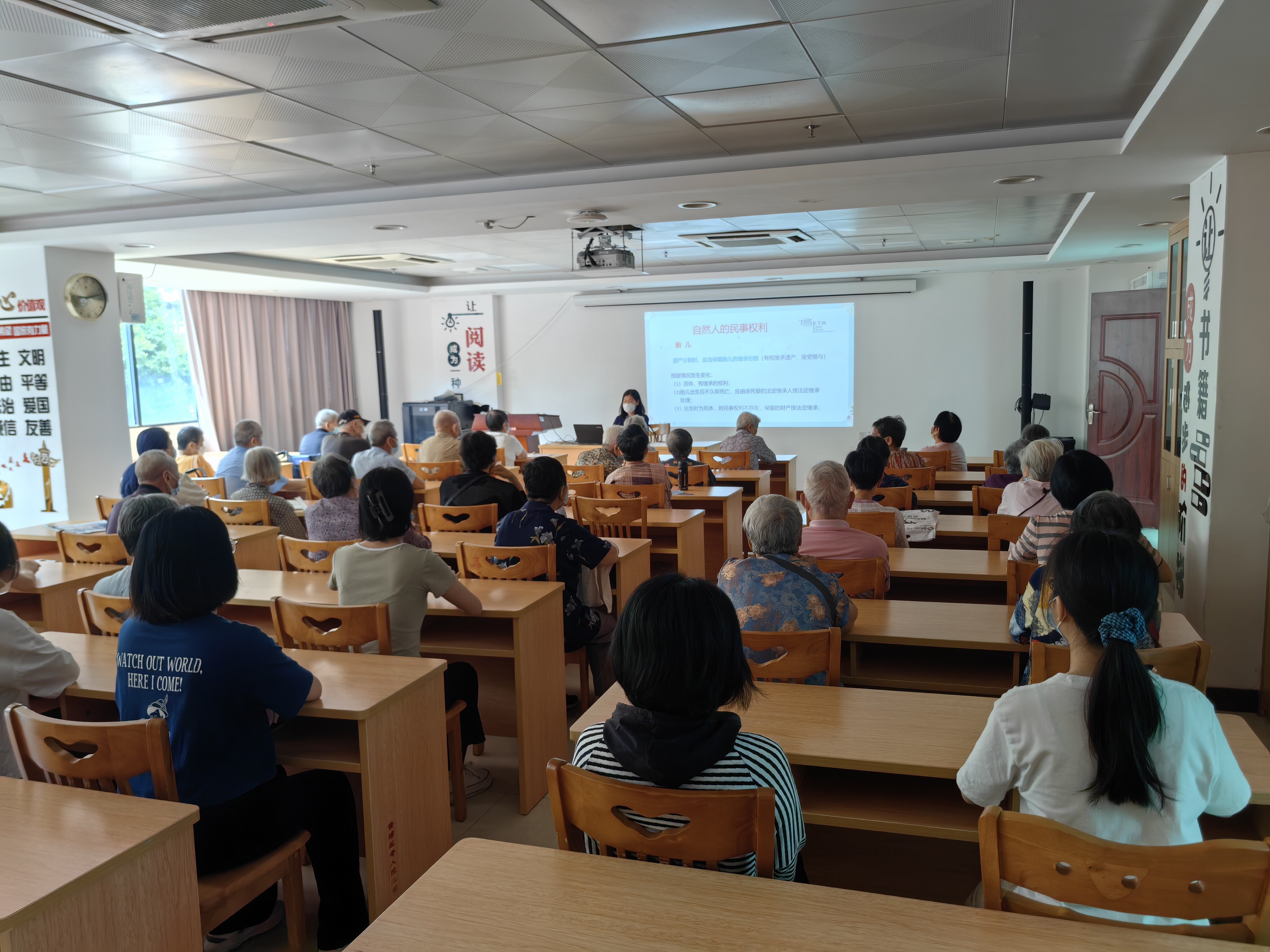 2023年5月19日上午,為貫徹落實“美好生活·民法典相伴”主題普法宣傳月活動精神,進一步推進《民法典》學習和宣傳,加深群眾對相關法律條文的認識,我院特邀廣信君達律師事務所馮律師到區老人院開展“美好生活·民法典相伴”法律知識講座。50餘位老年人和員工到場聆聽。