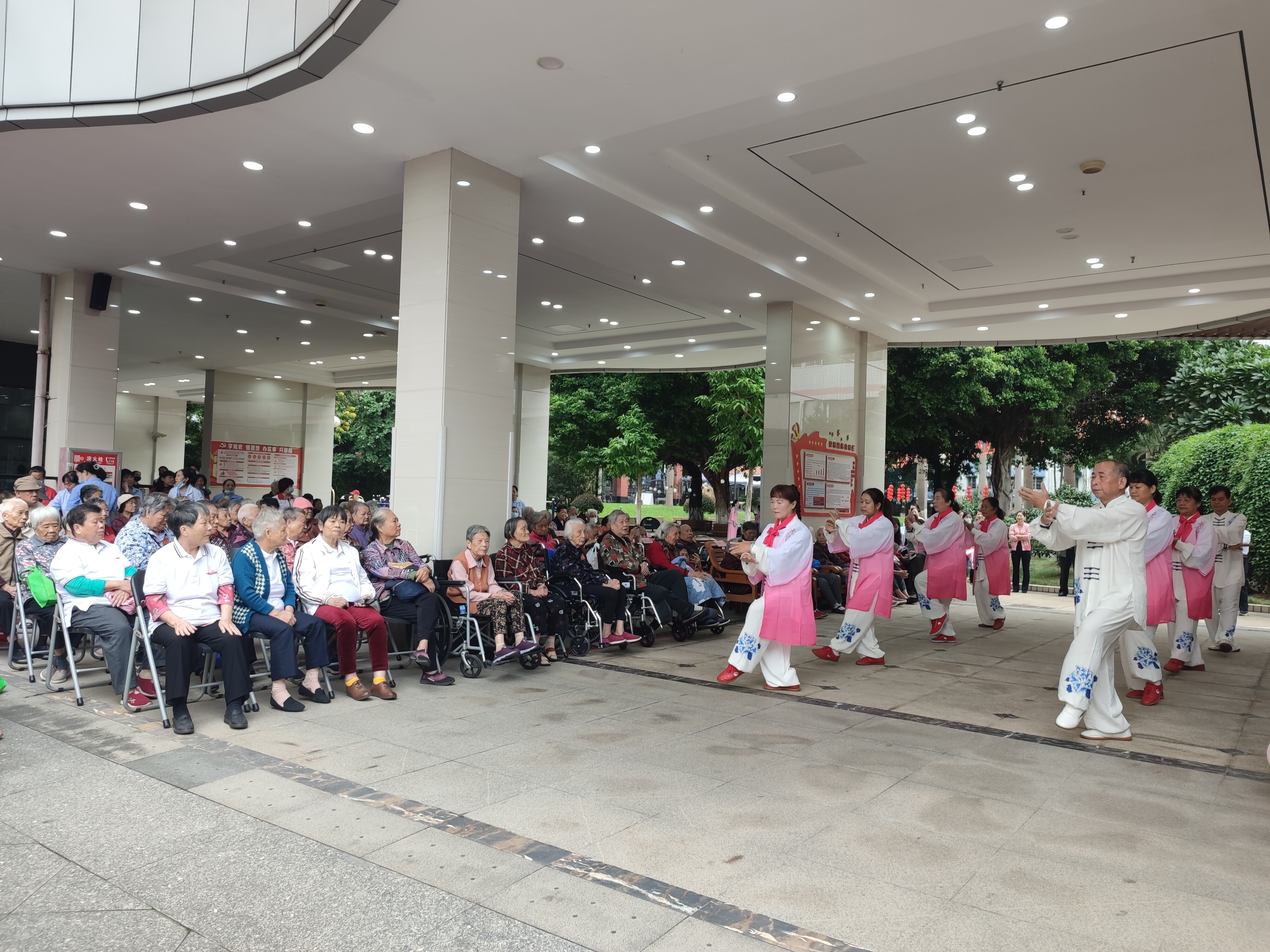 當天,區老人院還聯合區平安促進會在院內開展“我們的節日·愛在深秋 樂享重陽”文藝表演活動,現場82名誌願者以及區老人院夕陽紅誌願隊帶來了《我把吉祥送給你》《百善孝為先》《團結就是力量》等精彩的歌舞表演,營造熱鬧溫馨的節日氛圍。活動尾聲,院領導與區平安促進會會長共同為今年滿90歲的44名老年人佩戴“長壽之星”勳章,鼓勵老年人保持積極樂觀的心態,安享晚年生活。