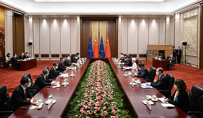 習近平強調,中歐關係的良好發展離不開獨立自主、相互尊重、互利合作。中方堅定奉行獨立自主的和平外交政策,尊重各國人民自主選擇發展道路的權利。中國同任何國家發展雙邊關係都不針對、不依附、也不受製於第三方。中歐雙方要正視差異,管控分歧,相互尊重。希望歐盟委員會著眼歐盟根本和長遠利益,從中歐關係大局出發,為中歐關係健康穩定發展發揮積極作用。