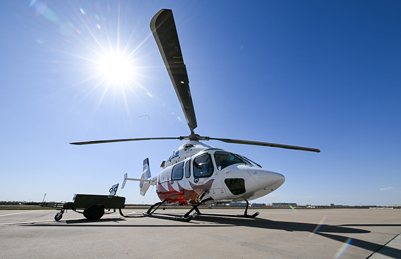 這是2023年4月7日在航空工業天津直升機有限責任公司停機坪拍攝的“吉祥鳥”AC332直升機。