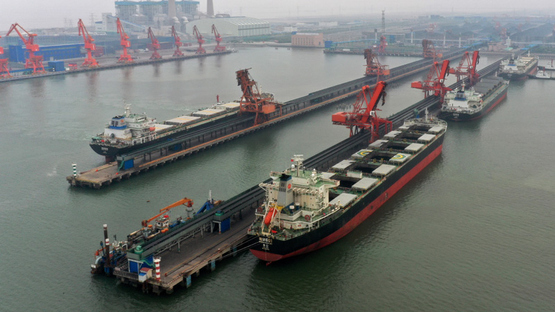 筆直的棧橋直伸大海深處,港灣內不時有貨輪鳴笛通過。談話間,一艘舷號為“神華523”的5萬噸級運煤船駛來。