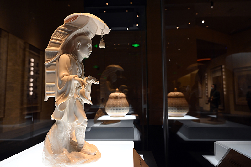 這是在北京中國國家博物館展出的德化白釉玄奘立像(2023年1月8日攝)。