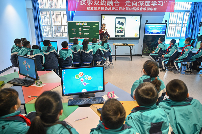 福州教育學院附屬第二小學的學生在由學校與網龍網絡公司共同打造的“創客教室”學習科學課(2020年12月18日攝)。