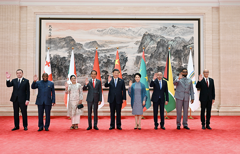 習近平和彭麗媛同貴賓們一一親切握手,互致問候並合影留念。