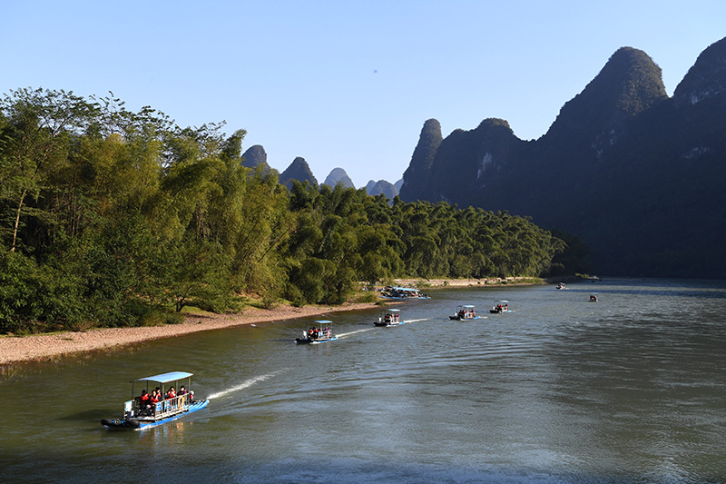 廣西桂林漓江景色(2021年11月25日攝)。