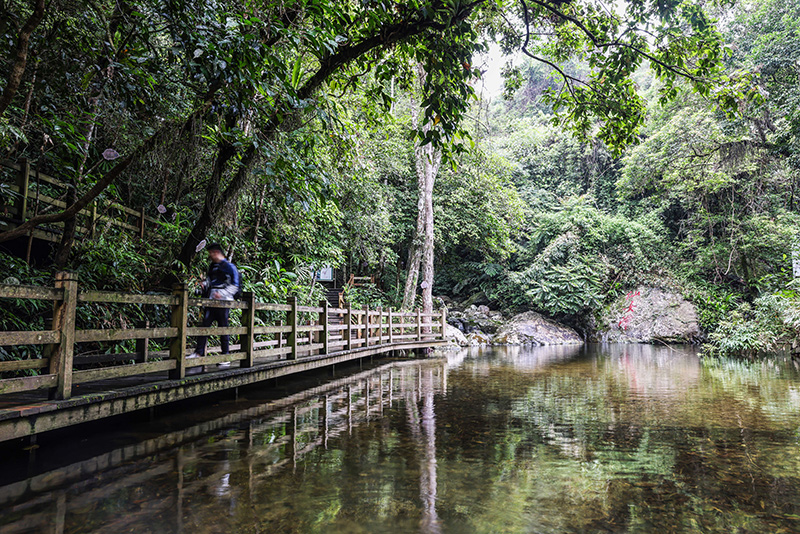 遊客在海南熱帶雨林國家公園五指山片區的仙女潭遊覽(2022年5月17日攝)。