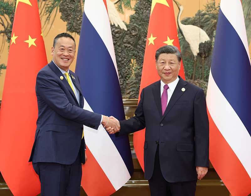 習近平強調,中方支持泰國走符合自身國情的發展道路,雙方要繼續在涉及彼此核心利益和重大關切問題上相互給予堅定支持。中泰要做高質量共建“一帶一路”的排頭兵,加快中泰鐵路建設,拓展數字經濟、綠色發展、新能源等領域合作,擴大人文交流。雙方要加大打擊電信詐騙、網絡賭博等跨境犯罪,為兩國發展營造安全環境。中方願同泰方加強在東盟、瀾湄合作、聯合國等多邊框架內合作,分享中國大市場和高水平對外開放機遇,為亞洲發展注入正能量,為推進全球治理變革作出積極貢獻。