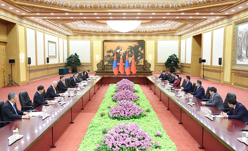 習近平指出,中方願同蒙方堅持相互尊重獨立、主權和領土完整,支持彼此維護核心利益,築牢兩國命運共同體的根基。中方將一如既往幫助蒙古國振興經濟,有序推進相關口岸建設,開辟兩國互聯互通新通道。中蒙荒漠化防治合作中心已經成立,中方願繼續支持蒙方“種植十億棵樹”計劃,攜手開展生態文明建設。中方願拓展中蒙俄三方合作,穩步推進三國經濟走廊建設。