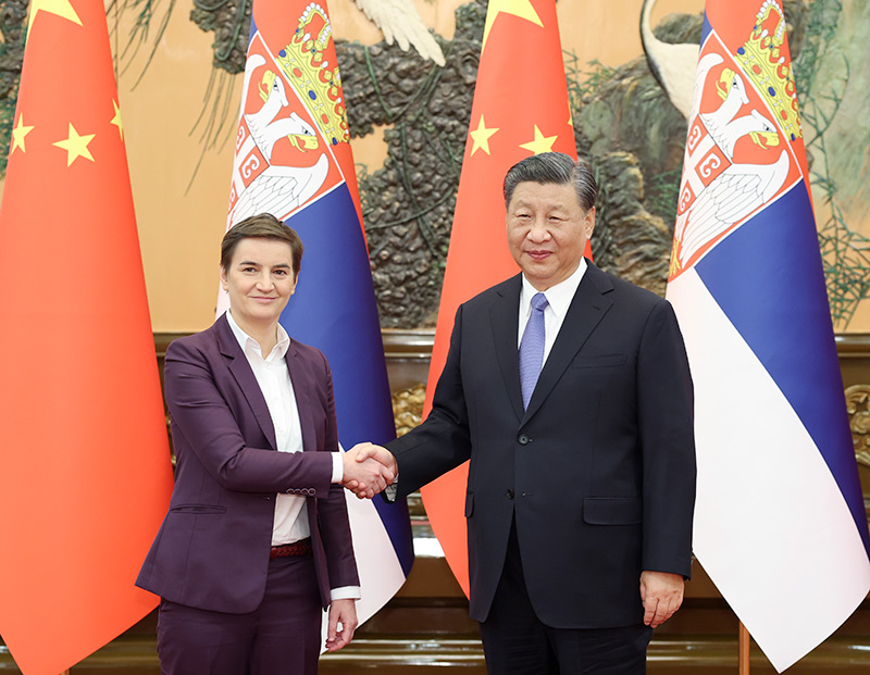 習近平指出,不久前武契奇總統來華出席第三屆“一帶一路”國際合作高峰論壇,這次總理女士來華出席第六屆中國國際進口博覽會,體現了塞方對中國人民的真誠友好和對發展對華關係的堅定信念。中國和塞爾維亞是曆經風雨、患難與共的“鐵杆朋友”。兩國關係曆史積澱深厚,民意基礎牢固,共同利益廣泛,合作動力強勁。近年來,雙邊關係持續高位運行,全麵戰略夥伴關係內涵日益豐富,務實合作成果豐碩。新形勢下,中方願同塞方一道,推動兩國關係高質量發展,更好造福兩國人民。