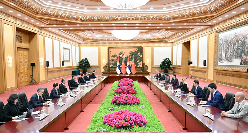 習近平強調,雙方要共同努力建設好、運營好兩國合作大項目,推動中塞自由貿易協定早日生效,加強科技創新合作,深化教育、體育、旅遊等領域合作,擴大人員往來,傳承和發揚中塞友好。中方支持塞爾維亞走獨立自主的發展道路,願同塞方加強多邊協調配合,共同維護國際公平正義。