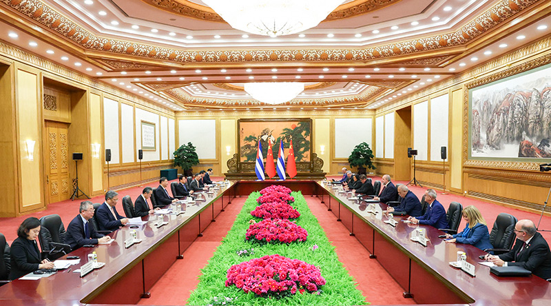 習近平指出,中國和古巴是好朋友、好同誌、好兄弟。在中古曆屆領導人引領和培育下,兩國在建設本國特色社會主義道路上攜手並進,在涉及彼此核心利益問題上相互支持,在國際和地區問題上密切配合,結下了牢不可破的信義之交。中方從戰略高度和全局角度看待和發展兩黨兩國特殊友好關係,堅持中古長期友好方針,願同古方持續深化政治互信和戰略協作,開展治黨治國理論研討和經驗交流。中方將繼續堅定支持古巴人民反對外來幹涉和封鎖,維護國家主權和民族尊嚴。