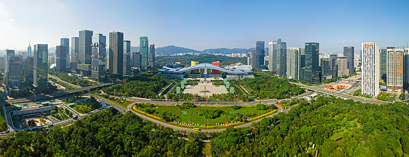 這是在廣東省深圳市拍攝的深圳市民中心和蓮花山公園一線(2020年10月2日攝,無人機照片)。